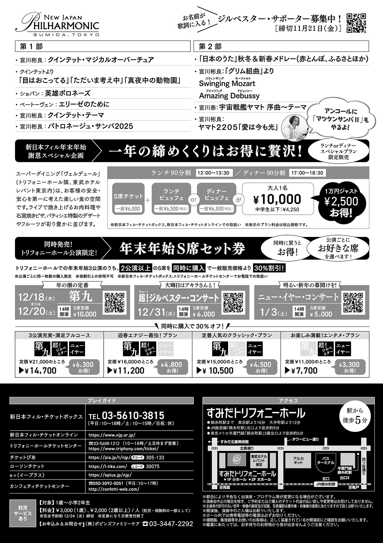 主催:公益財団法人 新日本フィルハーモニー交響楽団 すみだトリフォニーホール(公益財団法人墨田区文化振興財団)