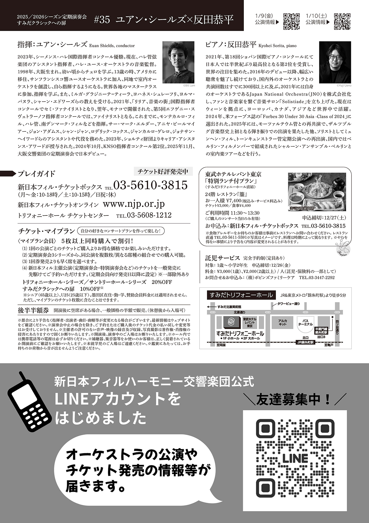 ※墨田区在住・勤割引:新日本フィル・チケットボックス&トリフォニーホールチケットセンターのみ取扱い