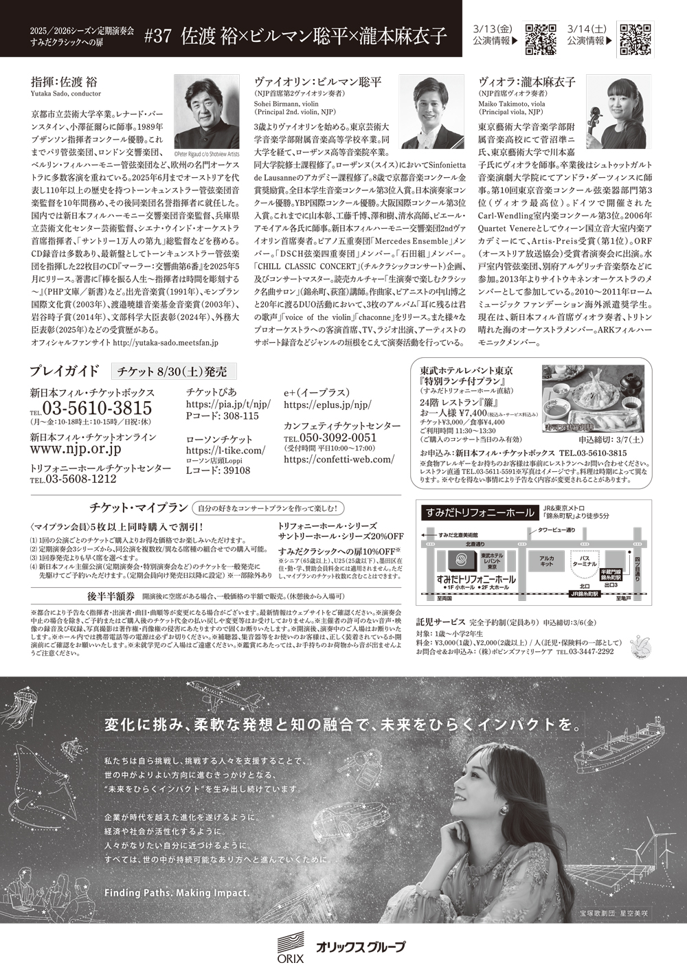 *Sumida Ward Resident/Work Discount: Available only at the New Japan Philharmonic Ticket Box & Triphony Hall Ticket Center