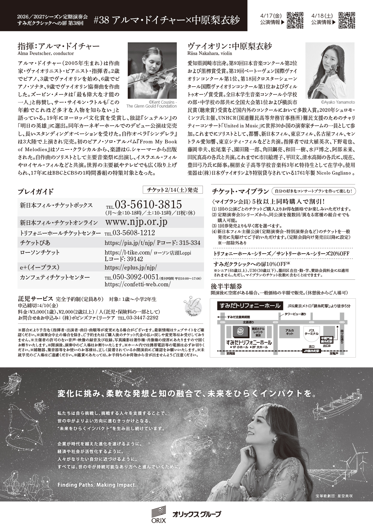 ※墨田区在住・勤割引:新日本フィル・チケットボックス&トリフォニーホールチケットセンターのみ取扱い