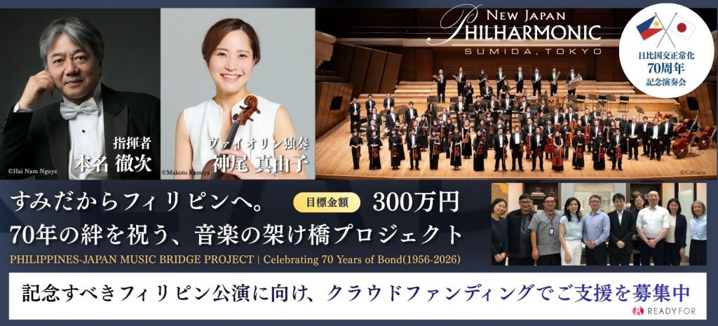 すみだからフィリピンへ。そして、その先のさらなる高みへ。新日本フィルが新しい歴史を刻むこの旅のパートナーとして、どうか温かいご支援をお願い申し上げます。